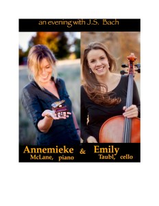 Cellist Emily Taubl and pianist Annemieke McLane are performing pieces by J. S. Bach on Friday evening, November 8, 2019 at 7:00 at the United Church of Strafford, Vermont. Admission is by donation and 20% of the proceeds support the Manheim Fund for the Arts. Please stay to greet the artists afterward over refreshments.